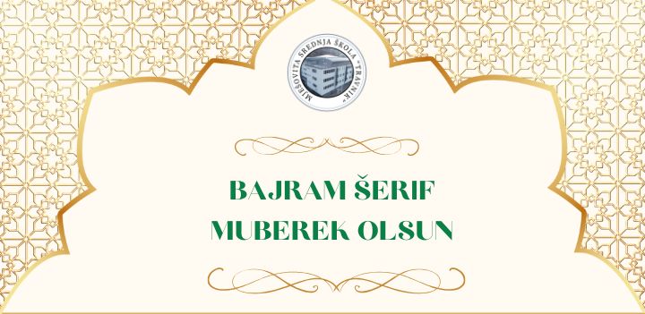 Mješovita srednja škola “Travnik” vam upućuje najiskrenije čestitke povodom nastupajućeg Bajrama, sa željom da ove praznične dane provedete u dobrom zdravlju, porodičnoj sreći i bereketu.