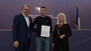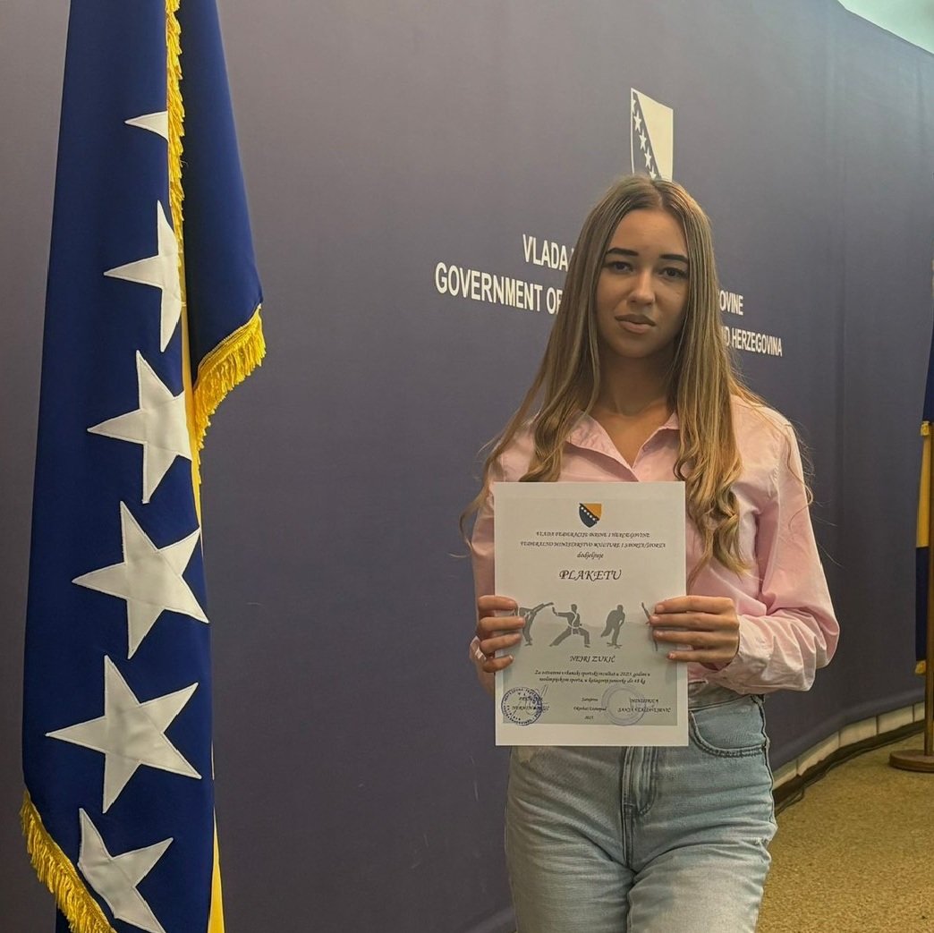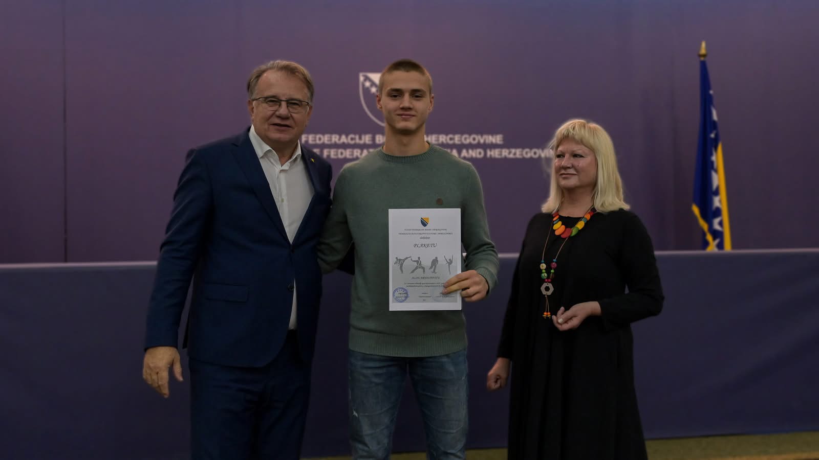 U utorak, 28. 10. 2025. godine, u zgradi Vlade Federacije Bosne i Hercegovine, upriličena je svečana dodjela plaketa za vrhunske sportske rezultate ostvarene u 2025. godini. Među brojnim nagrađenim sportistima našli su se i naši učenici koji su svojim uspjesima ponosno predstavljali svoju državu, grad pa i školu.